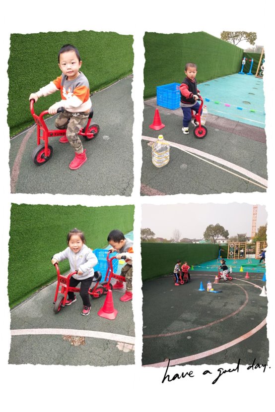 丰富的晨间锻炼开始喽,看,我们快乐骑手在骑平衡小车呢,骑得是不是很厉害呀~嘻嘻~