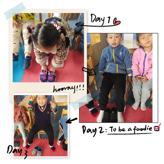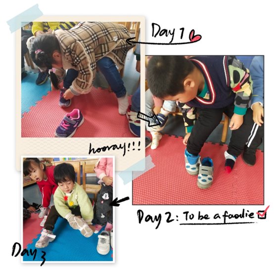当老师说“开始!",我们马上就准确地将自己的鞋子找到迅速摆放好。怎么样,是不是很棒呀?