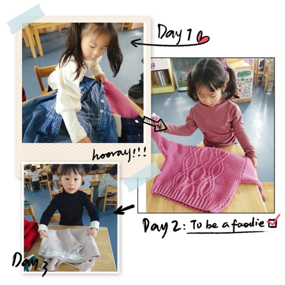 虽然我们叠衣服的动作还不太灵敏,但是我们已经有了很大的进步啦!这些生活活动,不仅提高了我们的自理能力与自我服务的意识,而且提高了我们的独立意识和自理能力,所以我们小朋友要做好自己力所能及的事情,争做生活小达人哟!