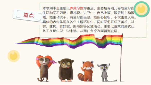 在这次的家长会中,教师强调了小班重点是好习惯养成。教育家陈鹤琴说过;“习惯养得好,终生受其益,习惯养不好,终身受其累。”幼儿期是培养良好习惯的重要时期,注重这一时期各种习惯的培养,是为他将来成功走向社会垒下的第一块坚实的基石。