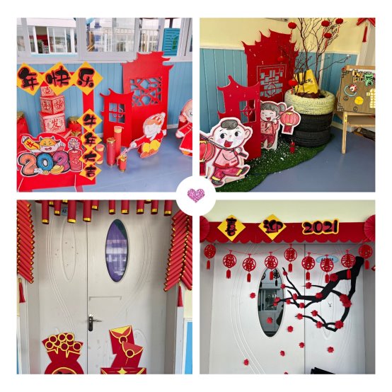 为了迎接2021的到来,老师们利用空余时间精心布置了大厅和每一个教室,每个班级的老师们用不同的方式迎接新年的到来:制作鞭炮、写福字、挂灯笼……整个幼儿园充满了新年的气氛。