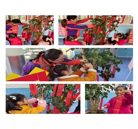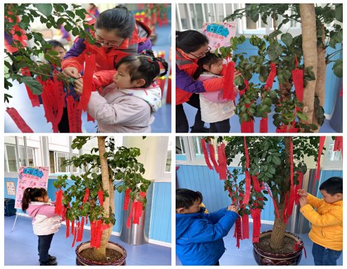 孩子们与爸爸妈妈将写好的许愿带一起挂在许愿树上,寄托美好的祝福。来看看孩子们的新年愿望是什么吧?