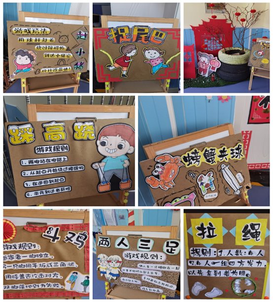 游戏活动分为跳房子、捉尾巴、赶小猪、踩高跷、两人三足、拉绳、螃蟹夹球、斗鸡等八个活动关卡,游戏内容丰富多彩,满足不同年龄段的幼儿。孩子们手里拿着“游园集点卡”,闯过一个个关卡,兴奋的穿梭在各个游戏场之间,一个个有趣的游戏让孩子们脸上洋溢着笑容,享受到了快乐的时光。