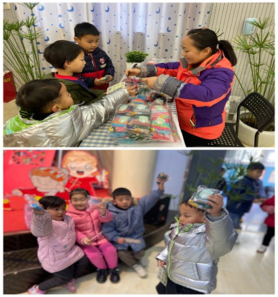 全部游戏玩过后,孩子们拿着手中的“游园集点卡”怀着激动的心情在兑奖处兑换心仪的新年礼物,拿到礼物后兴奋的和老师、好朋友们分享自己的喜悦。