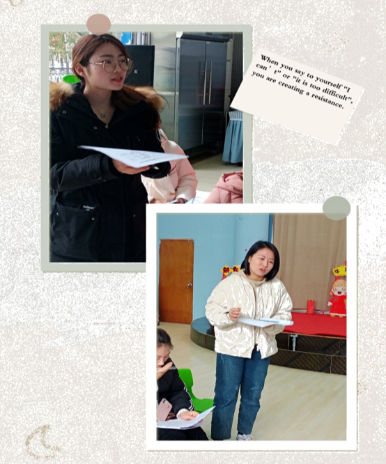 活动结束后,听课教师和上课教师进行研讨交流,先由上课教师进行自评和反思,然后与听课教师交流讨论,何主任与李主任分别阐述了自己的想法,一起找出教学活动的亮点和改进之处,使每位老师都能在这次活动中有所思,有所获。