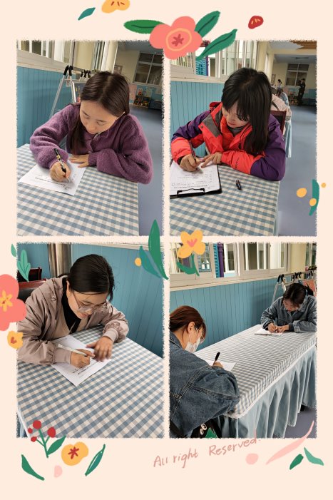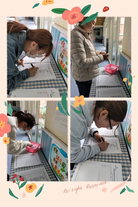 本次活动共有26位青年教师参加,活动开始前,参与活动的教师按照顺序依次到候场处抽取试讲题目,自定幼儿年龄段和课程领域,进行了计时三十分钟的现场活动设计的撰写。