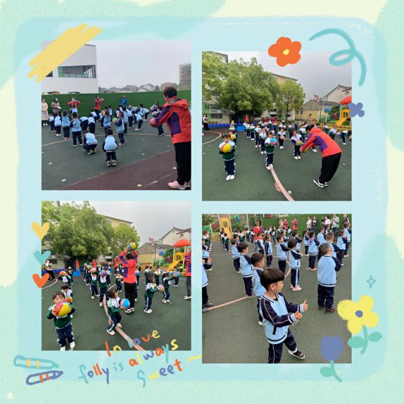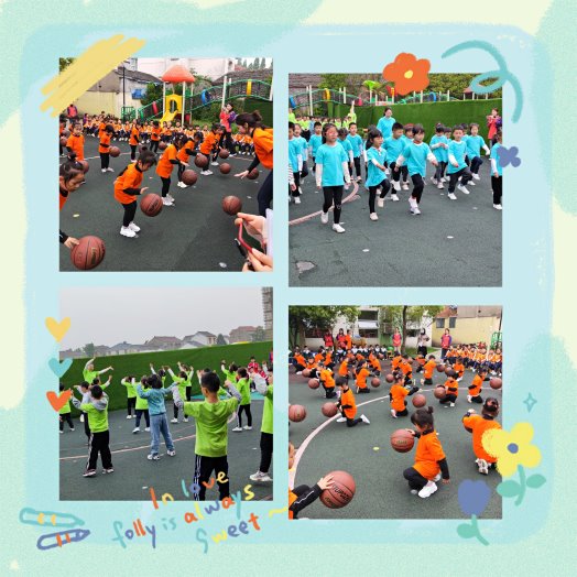最后出场的是大班组的哥哥姐姐们,他们一个个精神十足。看!他们有序的队形变换、男女生的篮球互动,让观看的家长们在不知不觉中和他们一起跳了起来…