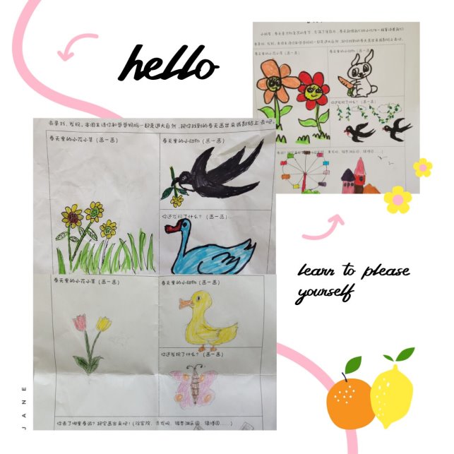 春天,它变成了一位魔术师,将自然界变得五彩斑斓、如诗如画,阳光是画笔,蘸着浓浓的春色,花儿红了,草儿绿了。大班的哥哥姐姐们将看到的一花一木、一景一物,用自己独特的方式表现出来,并将这一份美用色彩定格。