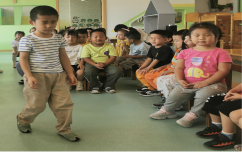 教师:你们的小眼睛真棒。那我们在玩一个游戏,闭上你们的小眼睛,猜猜我的手上是什么?