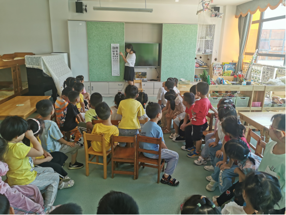光明对于一个正常人来说是什么?是我们的习以为常。光明对于一个盲人来说是什么?是生的希望,是他们的追求,更是他们一生的渴望。当一个人在黑暗的世界,那星点的色彩就是幸福的时刻。为了让幼儿更好的感受到光明的美好,懂得保护我们的眼睛,我们在这天开展了防控近视护眼活动。