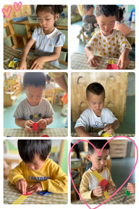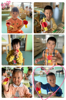 在如此欢庆一堂的氛围下,大家都非常积极的参与到手工制作《彩灯庆国庆》的制作活动当中,看我们是多么的认真!