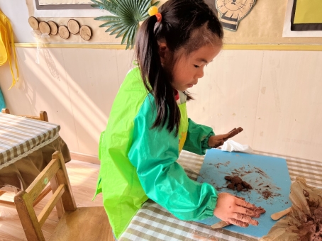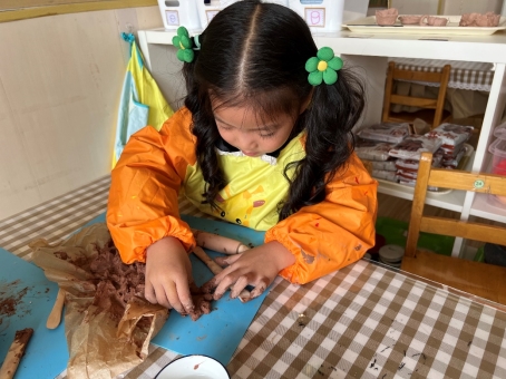 中班的区域新增了“陶泥坊”的活动,从孩子玩的过程中,我们可以感受到孩子对大自然材料的好奇和热爱,他们充满了探究的欲望去制作每一件作品。