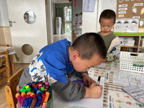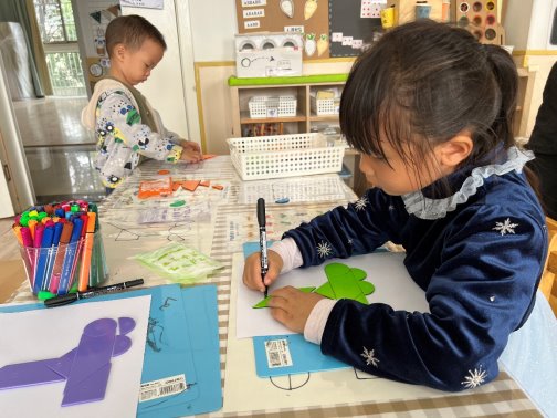 本学期益智区也添置了新的游戏材料——七巧板,孩子们在引导下可以乐于去探索,体验、感知数学图形的奥妙。他们在探索的过程中,会记录下自己的发现,给予其他小朋友探索时的帮助。