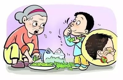 注意:鼻出血时,不要让孩子仰头或仰卧,否则会使鼻内血液向后流至口咽部。若鼻孔流出的血已不多,但孩子有频繁的吞咽动作,一定要让他把“口水”吐出来,若吐出的为鲜血,说明仍在出血,要及时送院处理。