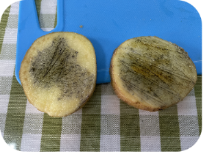 土豆漂浮的实验真有趣,我们还发现了土豆的有趣事情,将土豆切成片喷上碘伏,过一会土豆就会变色,你们知道这是为什么吗?这是因为碘伏遇淀粉会变色,土豆的主要成分是淀粉,所以会发生反应。