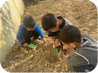 孩子们从家里带来了很多的工具,来到我们的种植地,迫不及待地挖起来,孩子们一个个干劲十足,看着土地变得越来越松软,孩子们特别的开心,感受到了劳动的乐趣。