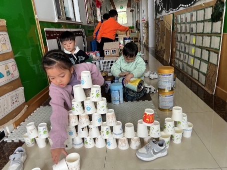 小小的搭建,趣味无穷。班级的建构区一直是孩子们“你争我抢”的“香饽饽”。材料的投放也是非常的贴近生活,可以是清水积木,也可以是奶粉罐、酒盒或者纸杯。