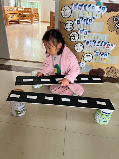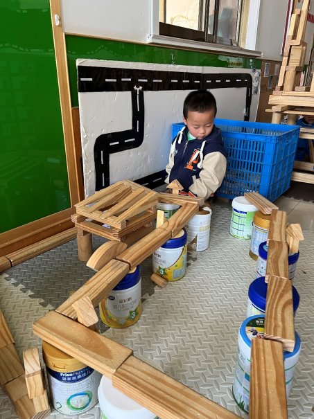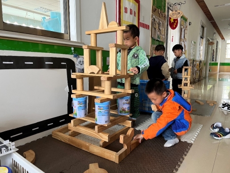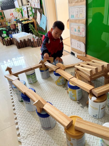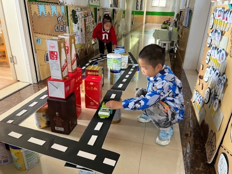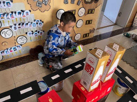 生活中最普通的酒盒子也许会是大人口中的废旧物品,但是在孩子们的手中成为“高楼大厦”的稀有材料。孩子们利用奶粉罐、酒盒以及添置的马路材料,巧妙地搭建出了现代化的高架桥。