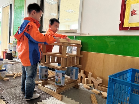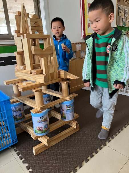 看!这些孩子们在搭建自己设计的高楼,虽然在搭建的过程中会遇到问题,但是孩子们还是会尽自己的努力想办法解决。