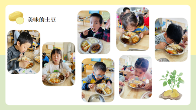 本次活动基于幼儿的兴趣及经验,通过实践探索,开启了幼儿和土豆之间的探秘之旅,在活动中我们一直秉承着游戏化、生活化、经验化的课程理念,虽然我们的课程已经结束,但是孩子们的土豆之旅还在继续.....