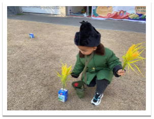 看!这边的宝宝们在收获小麦,小小的身影,大大的力量。