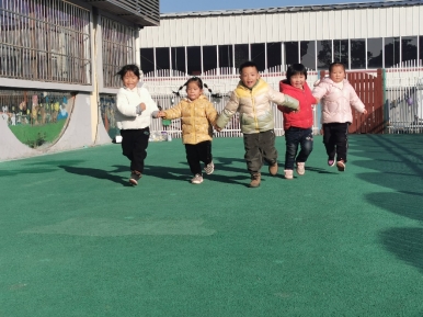 我们还可以一起在操场上手拉着手尽情地奔跑!