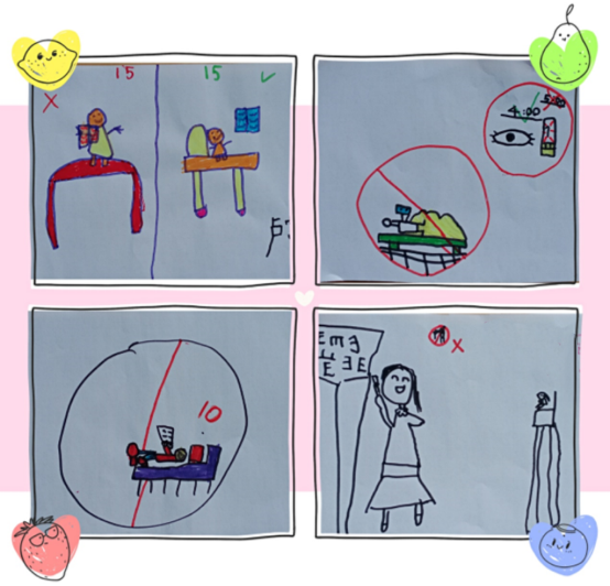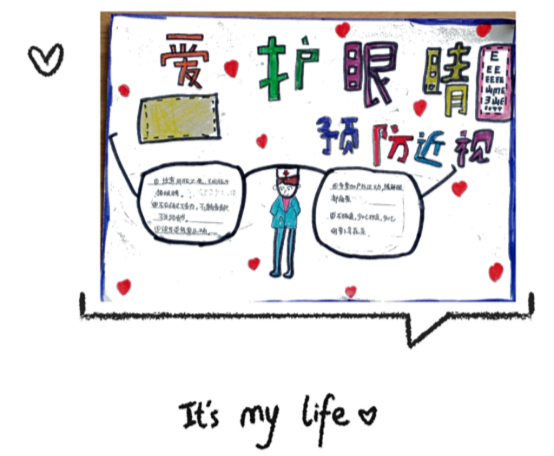 小朋友们了解眼睛的构造后,开始动手设计护眼标识、海报,在生动有趣的绘画中,学习健康用眼知识。看看小朋友眼中的世界吧!