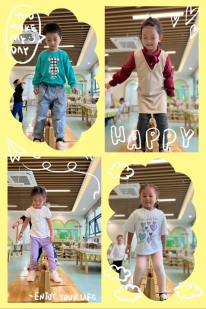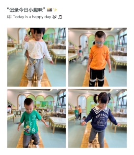 这个独木桥由班级里最重的几个小板凳组成,安全可靠,但还需要小朋友们学会排队,走独木桥时不能拥挤。