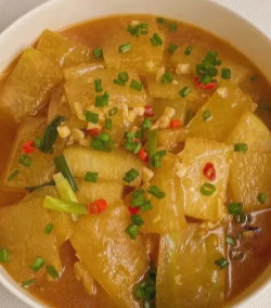午餐:大米饭、鹌鹑蛋烧鸭胗、红烧冬瓜、菜秧汤