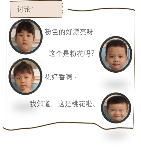 通过孩子们的讨论,他们发现这些逅花园美丽的花朵叫桃花。
