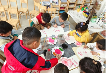 经过热烈的讨论,孩子们决定将美丽的桃花画下来。