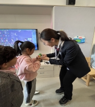 活动结束,我们给梁老师送了亲手制作的礼物,梁老师夸我们小朋友手真巧,我们还和梁老师一起合影留念,谢谢梁老师给我们带来这样一节生动有趣的英语课,孩子们对于上小学的憧憬和期待又多了一些,也更加期待参观小学的活动了。