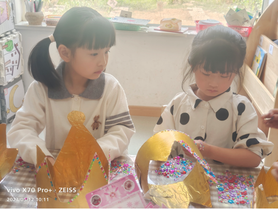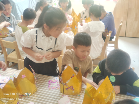所有孩子为了感谢妈妈,为她做了一顶精致的女王皇冠。