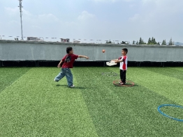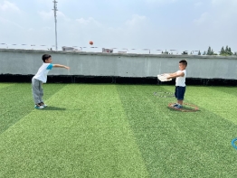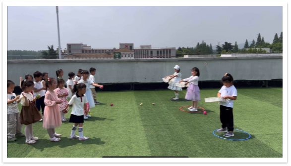 酷炫的出场方式,为接下来的趣味游戏增加了更多的乐趣。考验我们小伙伴的默契游戏“沙包大作战”正式开始啦!