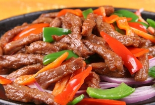 午餐:荞麦大米饭、甜椒炒牛柳、蒜泥空心菜、菠菜腰花汤