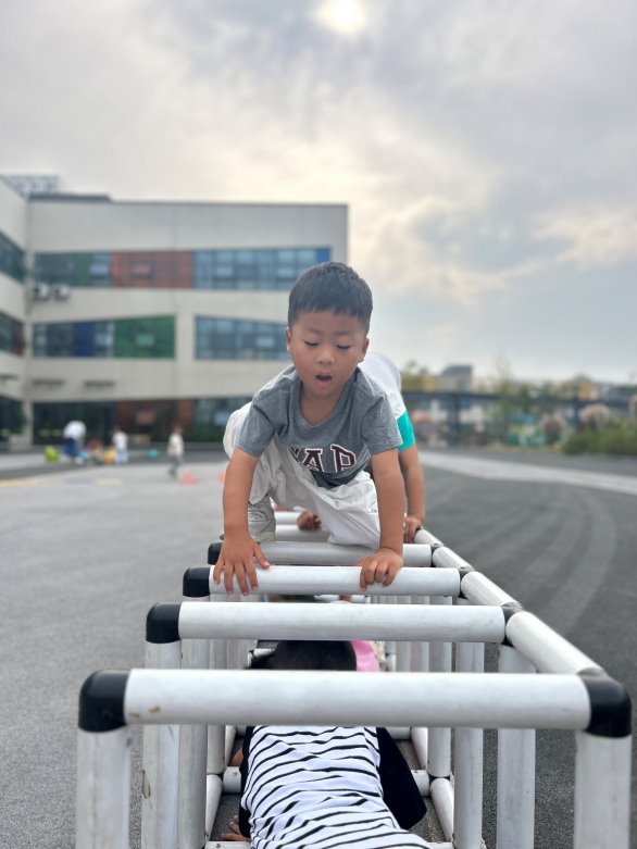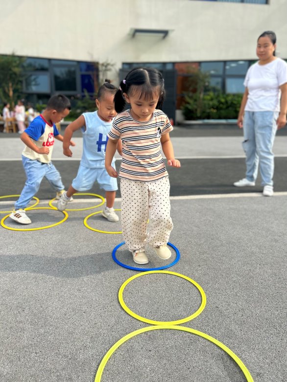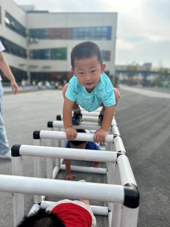 早晨的太阳照在绿油油的草坪上,孩子们踏着欢快而富有节奏感的乐曲进入了幼儿园,有的奔跑,有的蹦,有的钻,有的爬;或是拍球,或是在运动器材的帮助下自行运动。根据幼儿的年龄特征,教师们为孩子设置了丰富多彩的游戏,投放了充足的材料,设计了行走、奔跑、跳跃、平衡、钻,爬、投掷等游戏区域,让我们来欣赏一下小一班孩子晨间运动的快乐时刻吧。