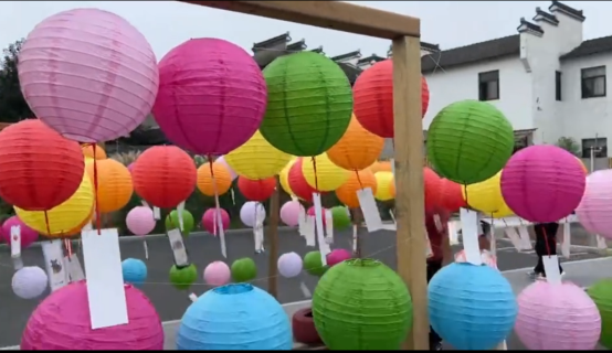 汉服戏花灯,欢乐猜灯谜。一条条谜语跃然纸上。孩子们三五成群地站在灯谜前,或低声细语,或寻求爸爸妈妈们的帮助,都能猜到答案。