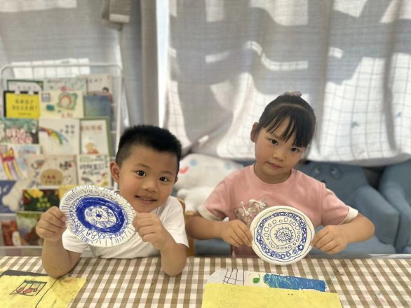 小小中国娃,满满爱国情,大一班的小朋友用绘制的一张张精美的青花瓷纸盘,组成一条漂亮的巨龙,每一个青花瓷盘都各有特色,呈现出不一样的青花之美。