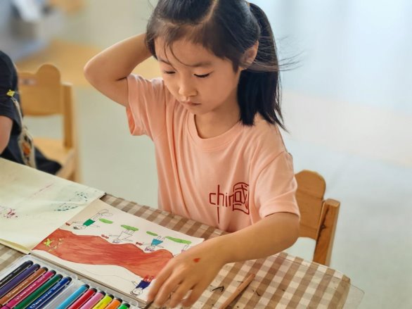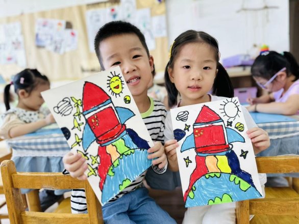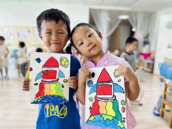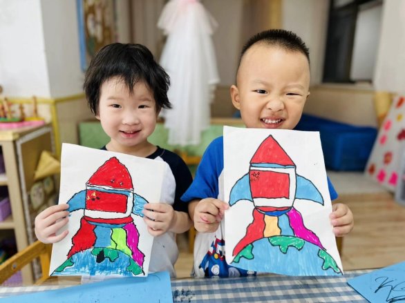 一幅幅充满童趣和爱国之情的画作呈现在大五班小朋友画笔下,在这个特殊的日子里,他们用自己的方式表达着对祖国妈妈的热爱与敬意。