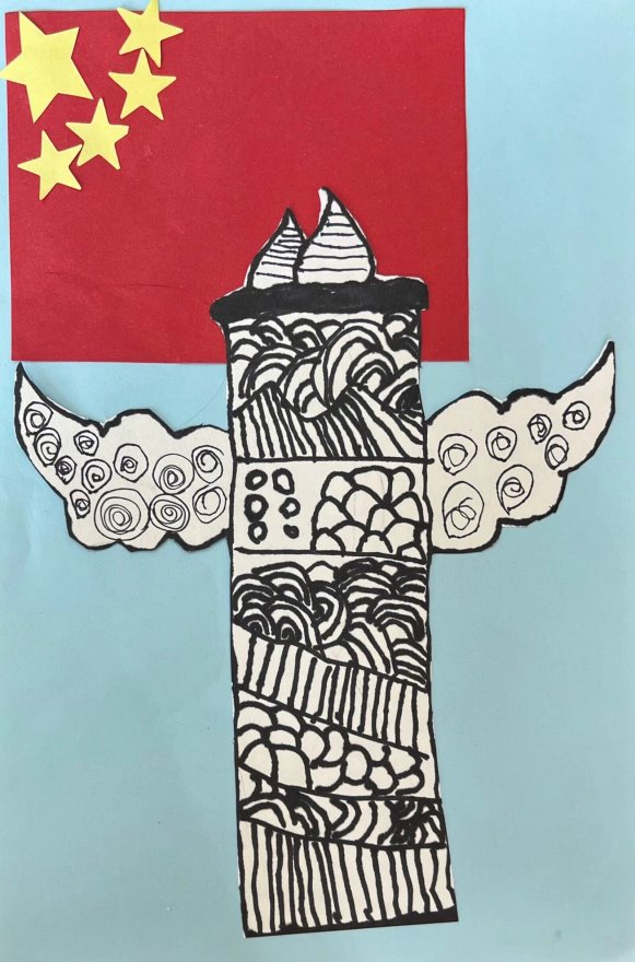 华表柱,是中国的象征,它与鲜艳的五星红旗相互辉映,构成一幅壮丽的画卷。瞧,清修、上湖大班的小朋友用绘画华表柱的方式,表达敬意。