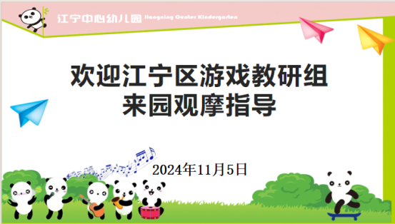 《指南》指出,幼儿园教育要以游戏为基本活动,要发现、保护和引导幼儿固有的天性。幼儿园应当将游戏作为对幼儿进行全面发展教育的重要形式。江宁中心幼儿园因地制宜创设了丰富的户外自主游戏区,为幼儿提供丰富、适宜的游戏材料,保证充足的游戏时间,开展了形式丰富的户外游戏。2024年11月5日,我园迎来了江宁区游戏教研组观摩指导活动,为科学打造、创设适合幼儿的户外游戏保驾护航。