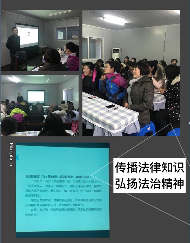 讲座上濮维康同志首先向各位老师普及了校园暴力的各种类型,包括语言暴力、心理暴力、力量暴力等,并详尽解释了造成法律上的相应后果:民事赔偿、治安管理处罚及刑事处罚。并针对幼儿园这一特殊群体,着重向大家普及新增加的刑法修正案(九)第19项:“对未成年人、老年人、患病的人、残疾人等负有监护、看护职责的人虐待被监护、看护的人,情节恶劣的,处三年以下有期徒刑或者拘役。”提醒大家作为一名幼儿园教师,我们也要有宪法的意识和法治的观念,很多法律法规是和我们幼儿园教师息息相关的。