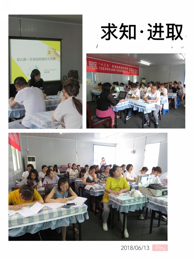 为了进一步提升全园教师一日活动优化的能力,使幼儿一日活动的组织和实施更加符合《纲要》精神和《指南》的要求,2018年6月13日中午,江宁中心幼儿园组织开展了区级菜单培训,并邀请到了竹山幼儿园蒋凯琳园长为全体教师进行了以《幼儿园一日活动的组织与实施》为主题的讲座。来自江宁中心园、司家分部、清修幼儿园的48名教师积极参加学习聆听讲座,会议室可谓座无虚席。
