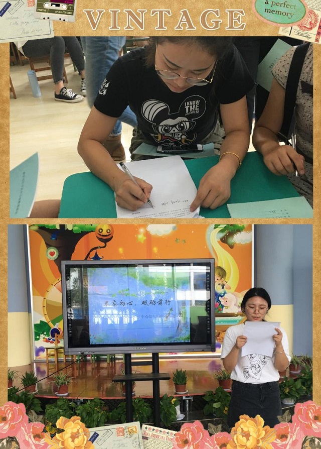 活动组织全体教师观看了江宁区师德模范报告会视频,学习楷模先进事迹;接着新教师代表何妍彩老师宣读了《江宁中心幼儿园师德承诺书》,全体教师签订“师德承诺书”,向家长和社会做出郑重承诺:弘扬师德、爱岗敬业、平等关爱每一位幼儿!