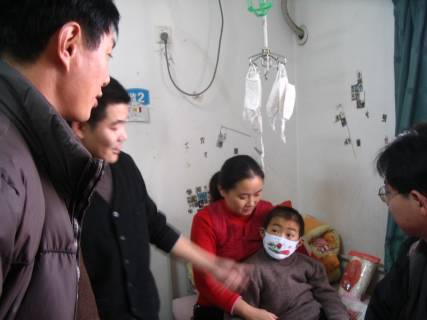 江宁小学三(2)班徐琦同学不久前因患白血病住进南京市儿童医院,得知消息后,全校师生很关注他的境况。数天前,该校举行了向徐琦同学捐款的爱心活动,共募得爱心款一万九千余元。12月18日下午,学校纪四清校长、幼儿园园长、德育主任、红十字会负责人等一行人专程来到医院看望了孩子及其父母,向陪护的父母询问了孩子的治疗情况,并赠送了全校师生捐助徐琦孩子治疗的爱心款,转达了全校师生对孩子的祝愿和关爱。孩子父母表达了对全校师生的深深谢意,表示一定积极、乐观地配合治疗,帮孩子渡过难关。