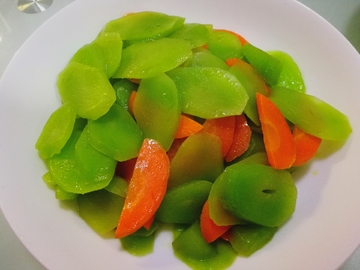 午餐:荞麦大米饭、椒盐羊排、莴笋炒胡萝卜、平菇鱼丸汤