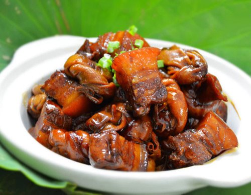 午餐:大米饭、千张结烧肉、西芹炒香干、山药筒骨汤、糖蒜头