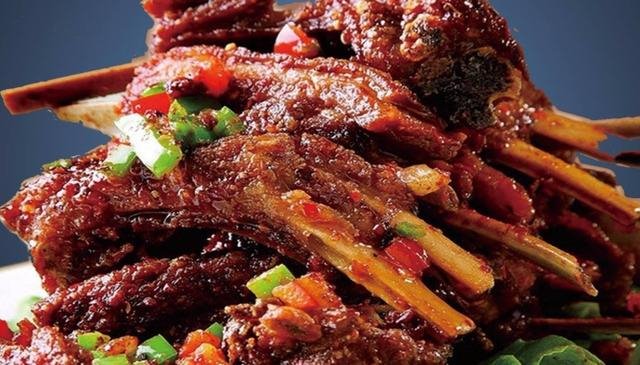 午餐:荞麦大米饭、椒盐羊排、彩椒炒莴笋、白菜木耳肉丝汤