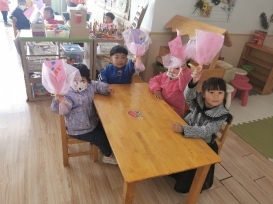 在这个温馨的日子里,我们应该为她们做些什么呢?宝贝们你一言我一语地讨论着,有的说“我要给妈妈大大的拥抱,对她说我爱你,妈妈”,也有的说“我晚上回家要帮妈妈干点家务,这样她就不用那么辛苦了”,也有的说“我要做个礼物给妈妈”。